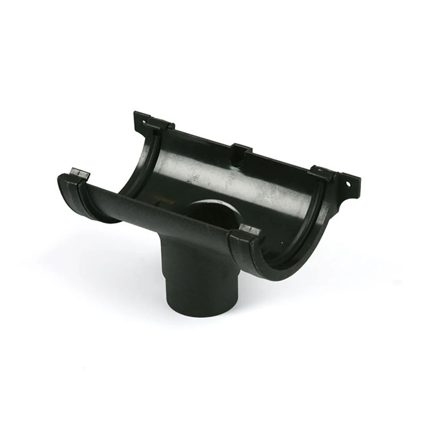 112mm Running outlet cast style, with fascia fix mounting brackets, seals and clips included. Plastic cast iron style