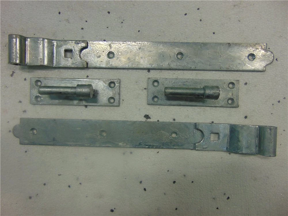 Heavy duty galvanised hooks and bands, hook pre drilled with countersunk holes for screws. Bands cranked for flush fitment. Square hole to take a coach bolt in the band with screw holes to take countersunk screws. Supplied as a pair. 600mm