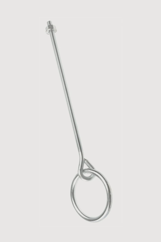 300mm long thread with manger ring, ideal for fixing through walls for hay nets.BZP finish.